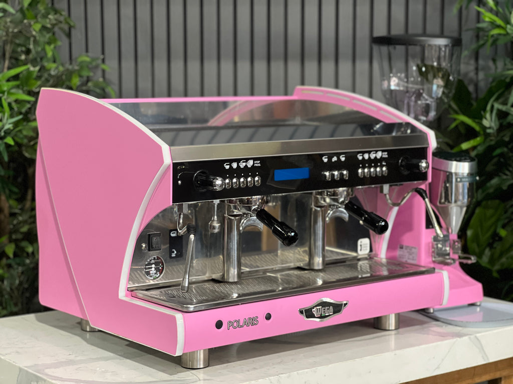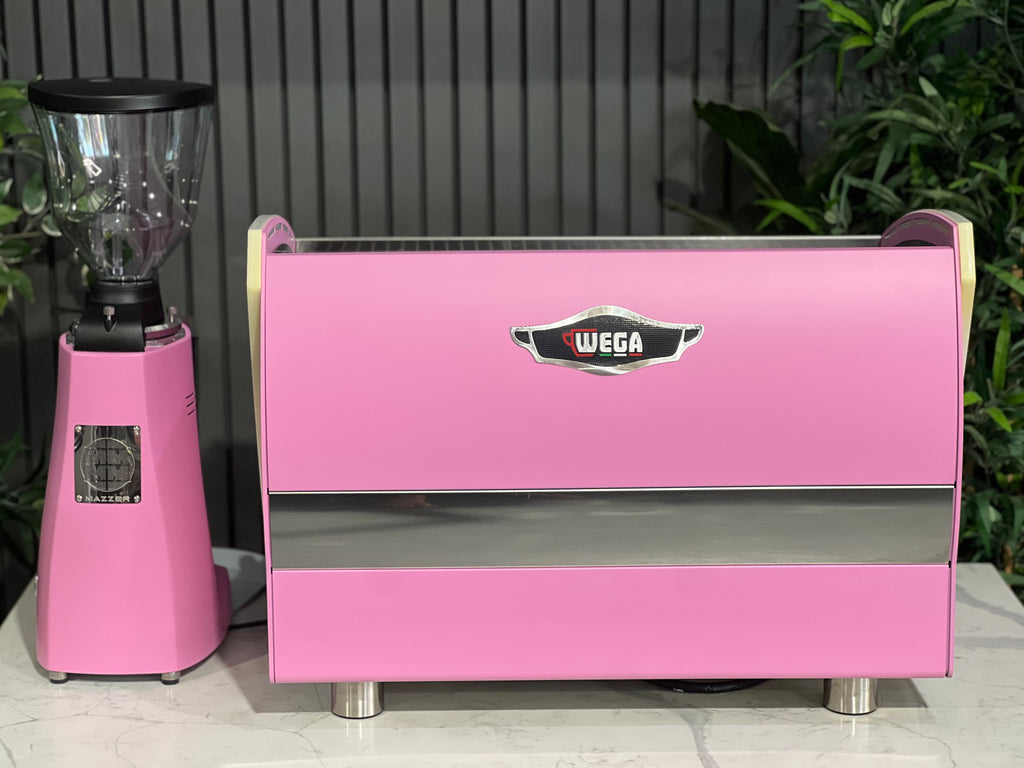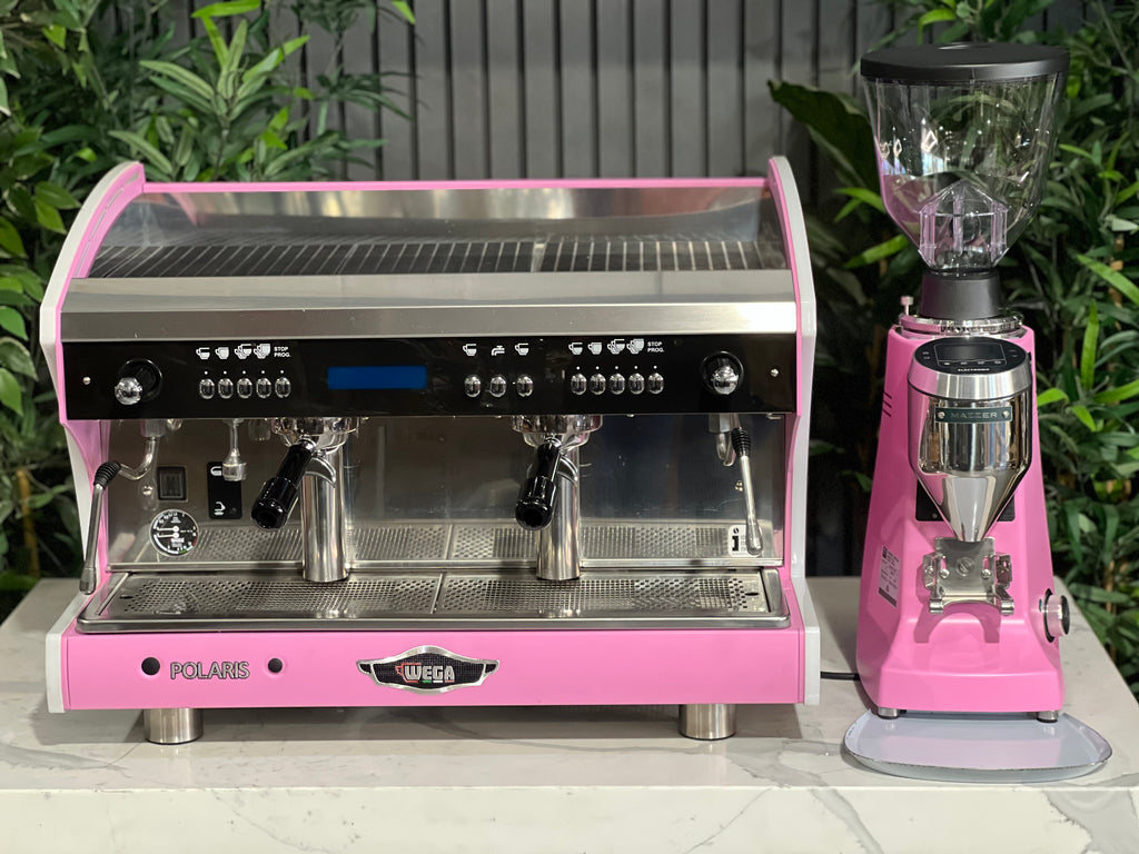 Wega Polaris Tron 2 Group Coffee Machine + Mazzer Major V Electronic Grinder Package Pink - New