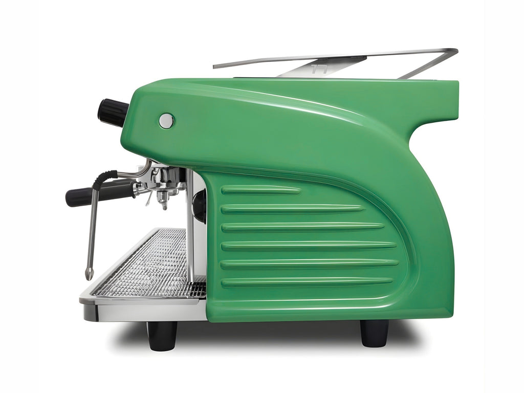 The Expobar Ruggero Classic is a compact espresso machine designed for outstanding beverage preparation and elegant aesthetics. Featuring illuminated signage for visibility and a handmade fibreglass body, this model comes in a vibrant green finish. The Ruggero Classic allows for fully customisable colours to match your brand. It includes an automatic backflushing program for each group, four programmable volumetric dosages, and a direct pre-infusion chamber for precise extraction. This multiboiler version ensures excellent recovery time, ideal for high-volume service.