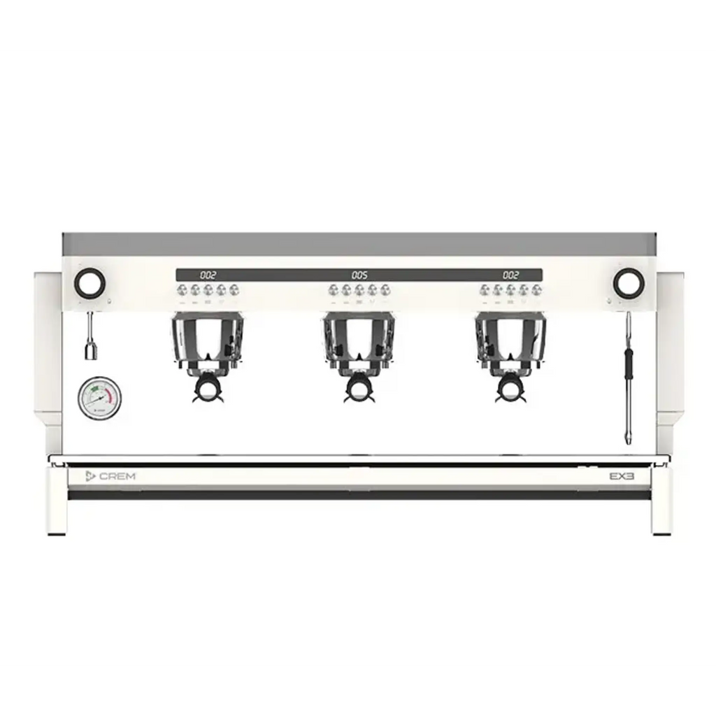 The Expobar Crem EX3 3 Group High Cup is a professional commercial espresso machine designed for high-volume cafés and busy environments. Its multi-boiler system, rotary pump, and programmable volumetric controls ensure precise and consistent espresso extraction. Featuring dual steam wands, PID temperature control, a shot timer, and a high cup design, this machine delivers top-quality performance while its stainless and white body offers a sleek, modern look. Custom colour options are also available.