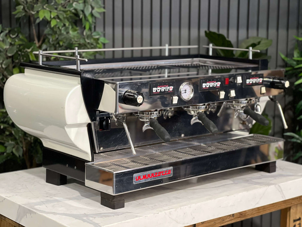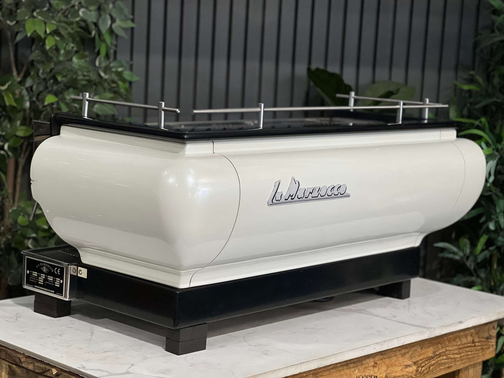 La Marzocco are one of the leaders in the espresso coffee machine industry with the FB70 being one of the hand designed models to be released by the italian factory. La Marzocco has become a well known name with many cafes and restaurants choosing La Marzocco for its reliability and quality builds. This dual boiler machine provides ultimate thermal stability while the dual steam wands & 3 group heads means this machine will keep up in a busy environment. This particular machine comes with a white custom body however we can custom paint this machine to your requirements, please get in touch with us to discuss any customisation options.