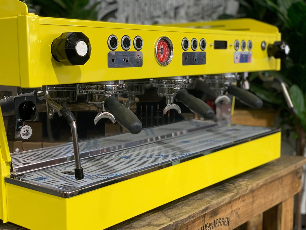 La Marzocco is considered a favourite in the coffee machine industry, and the Linea PB is an excellent example of why. This stunning machine takes the much-loved features of the Linea Classic and updates them to create the Linea PB. Internally, the PB features a dual boiler system paired with PID temperature control, volumetric controls, and independent brew boilers for each head. Combined with shot timers and insulated boilers, these features ensure consistency and precision. This beautiful La Marzocco Linea PB 3 Group is guaranteed to produce excellent coffee, shot after shot. As an added benefit, this machine has been customised in a striking canary yellow finish to add an extra touch of style.