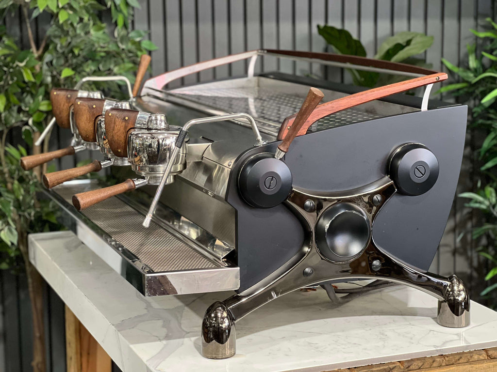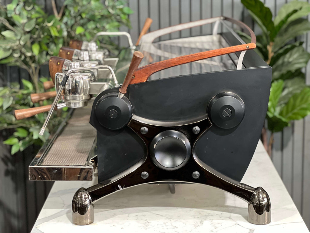 Slayer is one of the leaders of the espresso machine industry and the Slayer Espresso is a top performer with an eye-catching design that continually produces high-quality espresso, shot after shot and this particular machine clearly demonstrates this with its black & stainless body and beautiful timber accents. As an added benefit, this machine comes equipped with a multi boiler system that continually ensures temperature stability and steam production. It is equipped with a large 12L steam boiler and 3 x 1.2L brew boilers, for each group head. These features paired with steam levers and manual paddle brewing ensures that your barista has full control over producing fantastic coffee. Not only does this beautiful Slayer Espresso machine look amazing on the bench, but it also works like a dream.
